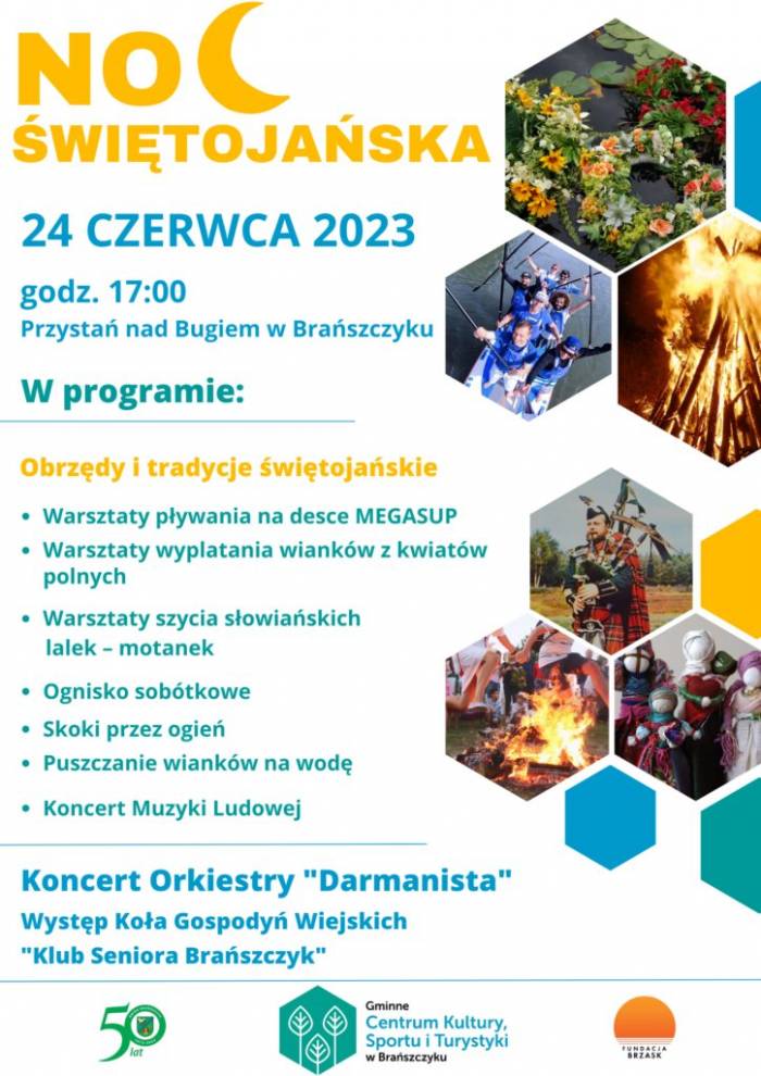Gmina Brańszczyk wraz z Gminnym Centrum Kultury, Sportu i Turystyki oraz Fundacją Brzask zapraszają w sobotę 24 czerwca na przystań w Brańszczyku na obchody nocy świętojańskiej.