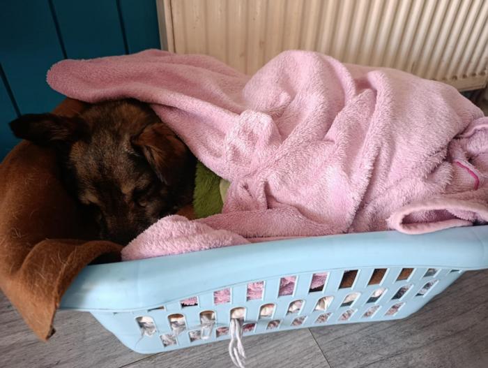 – Pierwsze dni jej świat to był kosz na pranie pod grzejnikiem. Ciepło i cisza. Spała tak głęboko, jakby odsypiała całe lata czuwania. Wstawała tylko, żeby wyjść załatwić potrzeby, które pięknie sygnalizuje. Jest niesamowicie grzeczna.