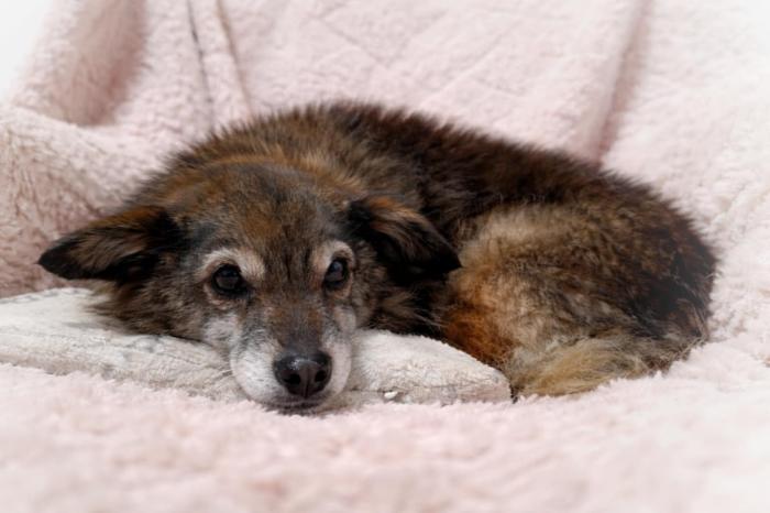 Weterynarz ocenił jej wiek na około 14 lat. Jest skrajnie wychudzona i odwodniona. Dosłownie sama skóra i kości. Ma stare, zrośnięte złamania żeber. To oznacza, że kiedyś ktoś ją skrzywdził albo żyła w takich warunkach, że nikt jej nie pomógł. I z tym bólem po prostu funkcjonowała dalej.