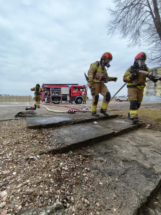 Dym w piwnicy, uwięzieni pracownicy. Strażacy ćwiczyli
