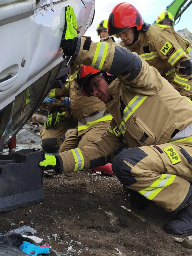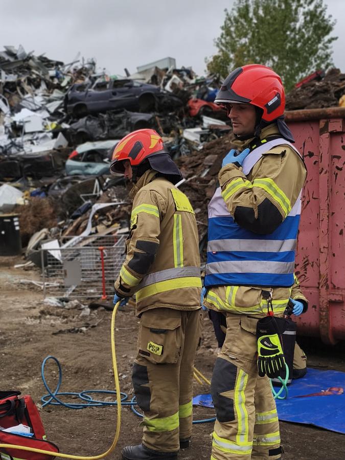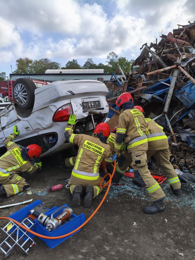 W galerii zdjęć widzimy strażaków podczas ćwiczeń ratowniczych na terenie zakładu. Na zdjęciach widać akcję zabezpieczenia miejsca wypadku, udzielania pierwszej pomocy poszkodowanym oraz uwolnienie ich z wraku samochodu. Strażacy doskonalą także techniki ratownictwa na przygotowanych wrakach pojazdów. Dzięki współpracy z firmą Fire-Max testują nowoczesne narzędzia. Podziękowania kierują do firmy TADEX za udostępnienie terenu i wraków samochodów do przeprowadzenia realistycznych ćwiczeń. Ćwiczenia pomagają strażakom doskonalić umiejętności i przygotowanie do sytuacji awaryjnych, gdzie każda sekunda ma znaczenie.