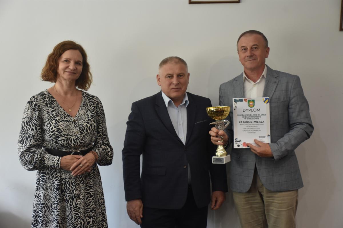 Uroczyste podsumowanie sezonu sportowego w szkołach podstawowych i ponadpodstawowych zgromadziło przedstawicieli oraz gości. Wręczono podziękowania za zaangażowanie i gratulowano sukcesów w różnorodnych zawodach sportowych. Szczególne wyróżnienie otrzymał pan Andrzej Rębowskiz organizator powiatowych igrzysk sportowych.